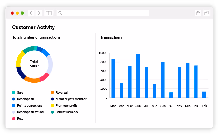 The reports and analytics built into loyalty software provide data and insights on customer behavior, allowing you to make informed decisions about your loyalty program development strategy or planned marketing activities. The most common areas approached by analytics will be tracking customer engagement and participation, monitoring the effectiveness of specific rewards or promotions, and identifying loyalty trends or patterns.