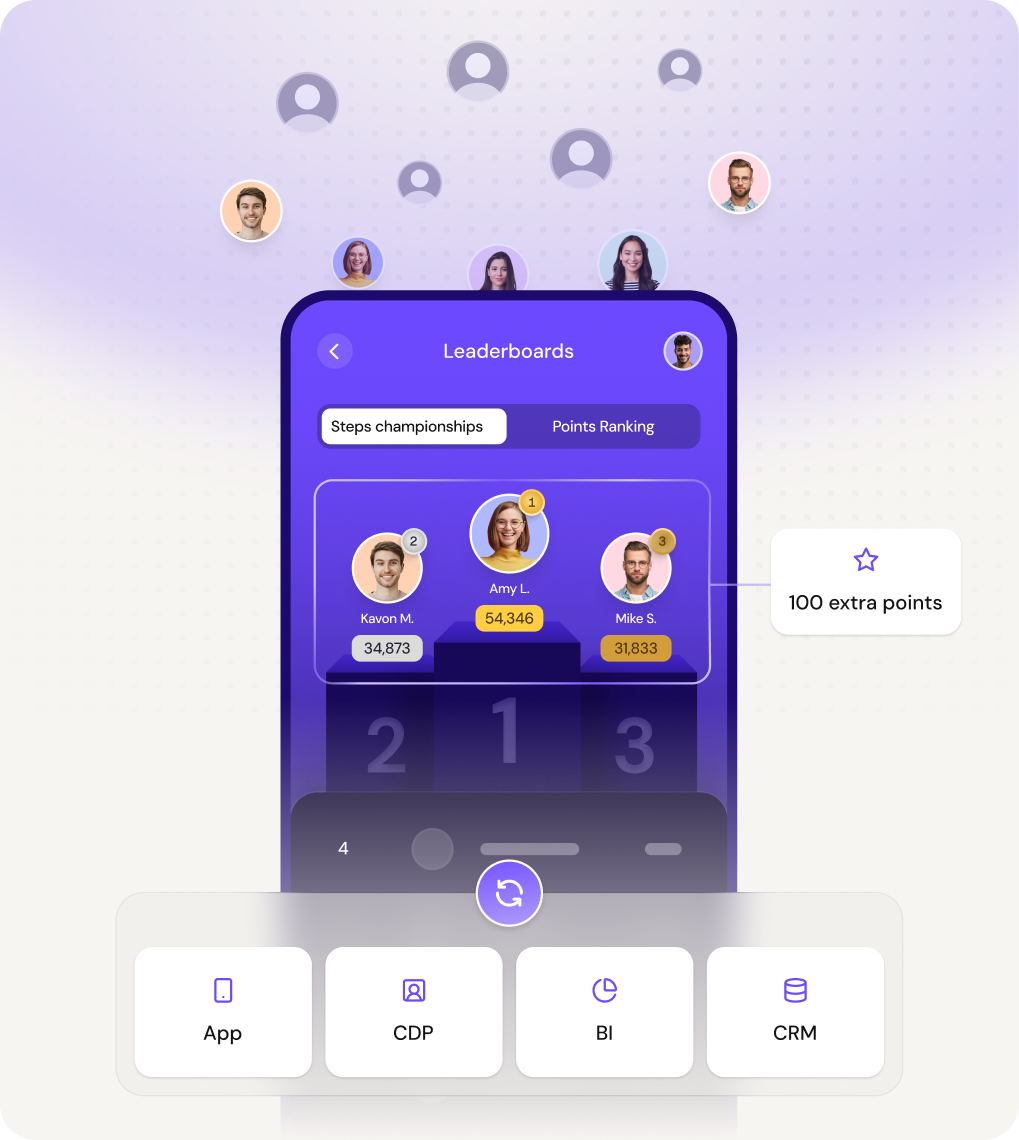 Gamification mechanics are added through an embeddable SDK and managed from a centralized dashboard. These mechanics usually sit inside existing applications, learning systems, or internal portals, rather than running as a separate loyalty system.