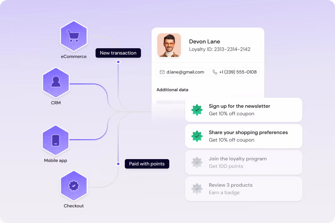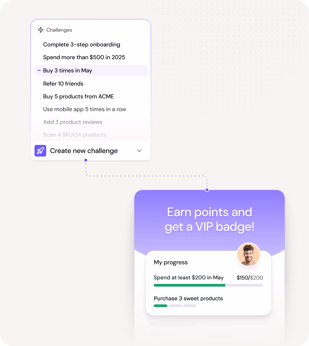Gamification helps loyalty programs move beyond passive point collection. Actions like purchases, referrals, reviews, or app usage turn into visible progress, tiers, or challenges. This gives members a reason to come back and engage users between transactions.