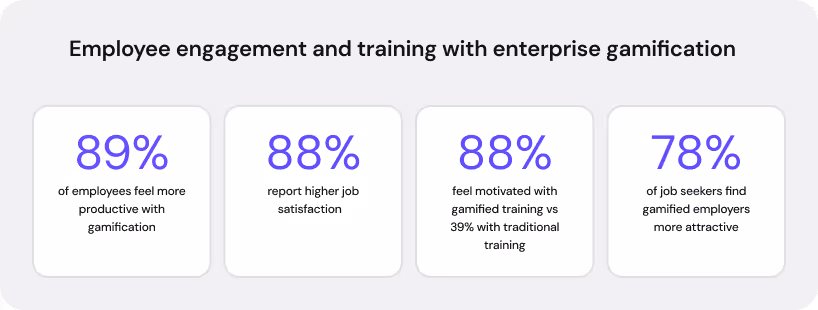 Successful enterprise gamification relies on simple, repeatable mechanics. Common examples include point systems, progress bars, challenges, and recognition tied to performance or learning outcomes.