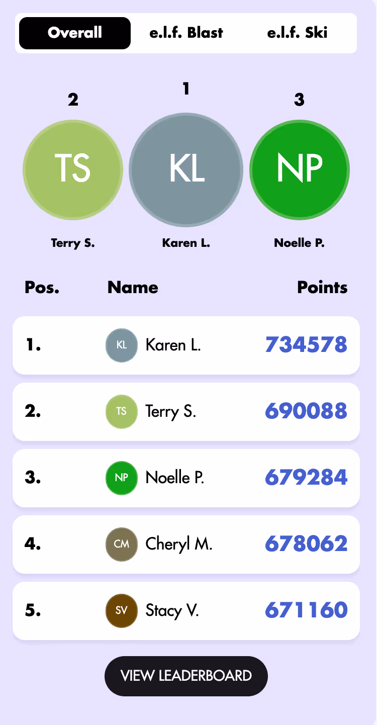 Example of leaderboards in e.l.f. Source: https://www.elfcosmetics.com/en_PL/account/games?id=beauty-squad-gamesÂ
