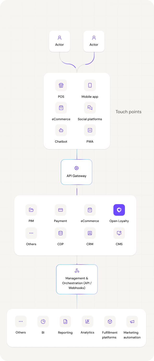 A loyalty engine sits at the center of a web of enterprise systems. Each integration point serves a distinct purpose – and together they create the real-time, omnichannel experience that modern customers expect.