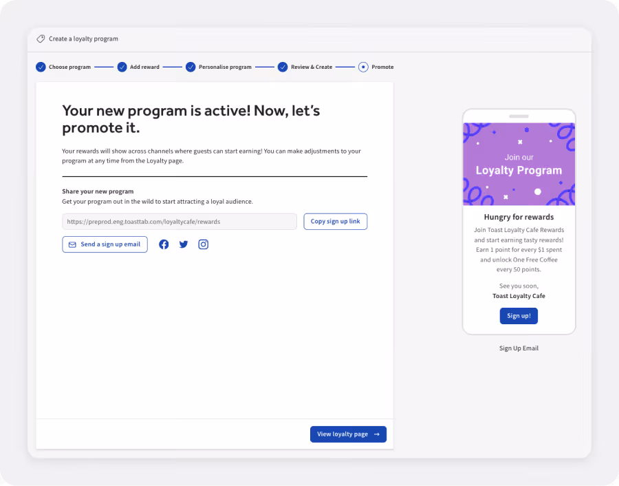 Because it's integrated directly into Toast's ecosystem, the experience is streamlined, but also relatively fixed. Brands looking for more control over loyalty design, deeper analytics, or features like gamification may eventually need something more customizable.